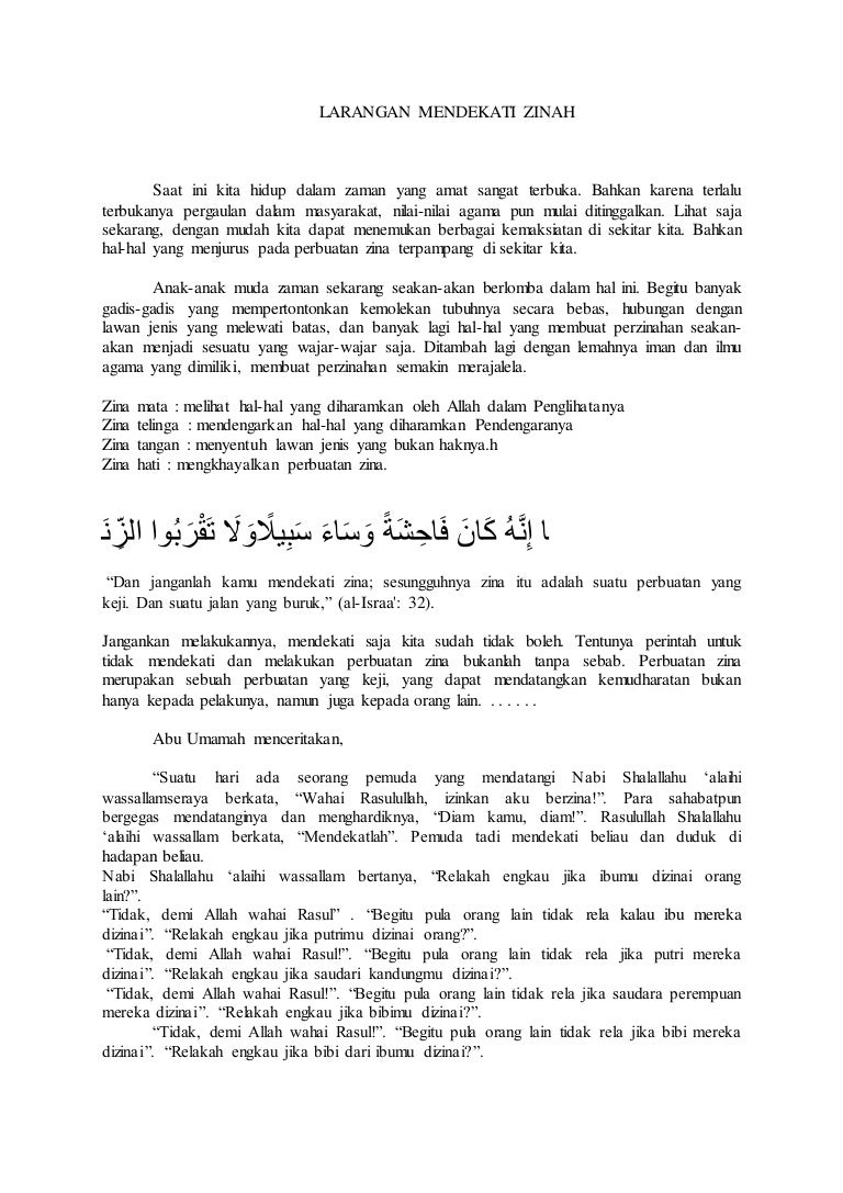 Kandungan Ayat Al Qur An Dan Hadits Tentang Larangan Mendekati Zina Bacaan Madani Bacaan Islami Dan Bacaan Masyarakat Madani